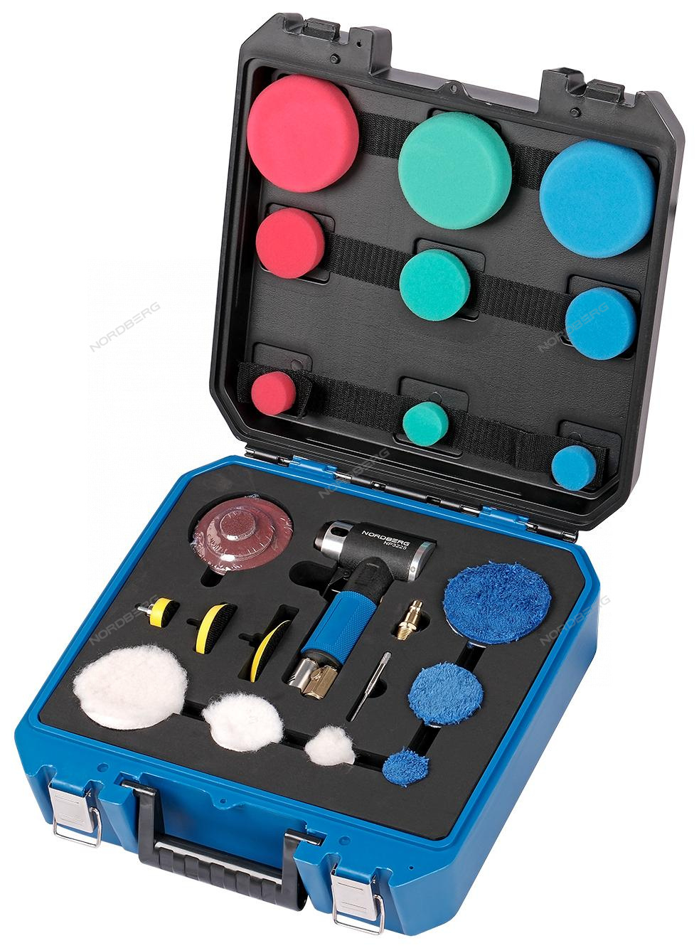 —Пневмошлифмашинка угловая орбитальная, эксцентрик, в комплекте с насадками, диам. 25, 50, 75 мм