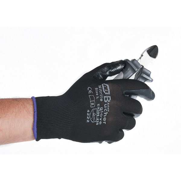 —Перчатки для механических работ с нитриловым покрытием, черные, размер L