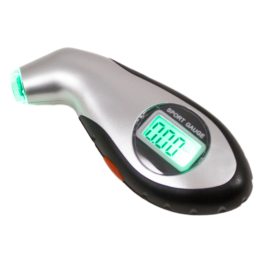 Для проверки давления в колесе<br />Характеристики:<br />Диапазон измерений 0-10 bar (0-150 psi)<br />Единицы измерения kg/cm2 / bar / kpa / psi<br />Количество в упаковке 1 шт.<br />Класс точности 2,5<br />Материал корпуса Пластик<br />Максимальное давление 10 bar (150 psi)<br />Рабочая температура от -20°C до +60°C<br />Степень защиты от влаги и пыли IP44<br />Тип манометра Электронный<br />Тип упаковки Блистер