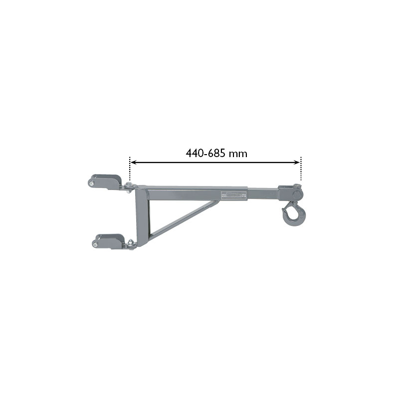 Стрела крана для WTA500, AC Hydraulic, WTK Стрела крана для дисковых тормозов, суппортов и т.д. (Опция) Оснащенная телескопической стрелой крана тележка является универсальным подъемным средством Стрела крана обеспечивает высокую эффективность и эргономичность при подъеме тормозных дисков, тормозных барабанов, суппортов и т.п. Стрела легко поворачивается на бок, позволяя выполнять операции по снятию колеса с вращающимся на 360º крюком.