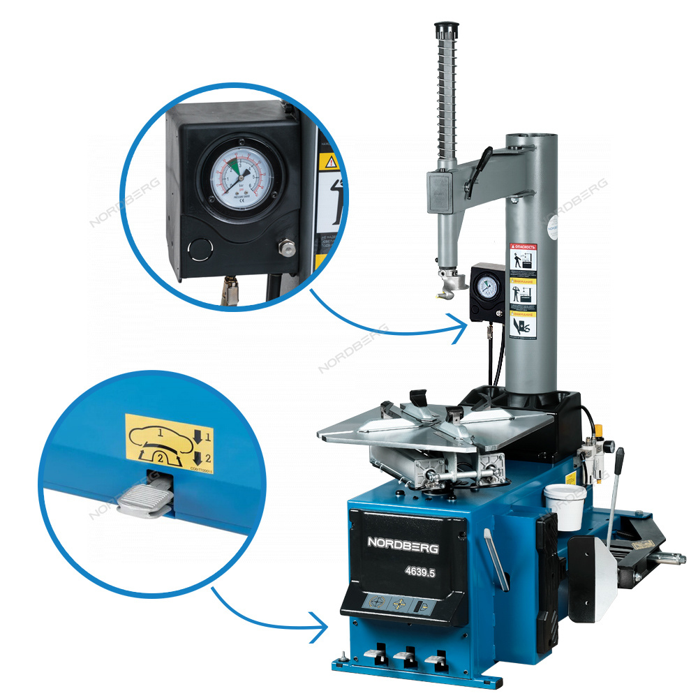 Станок шиномонтажный 380V п/автомат, 2х скоростн, подкачка педалью, зажимы 13-26", усил отжим, синий NORDBERG 4639,5ID