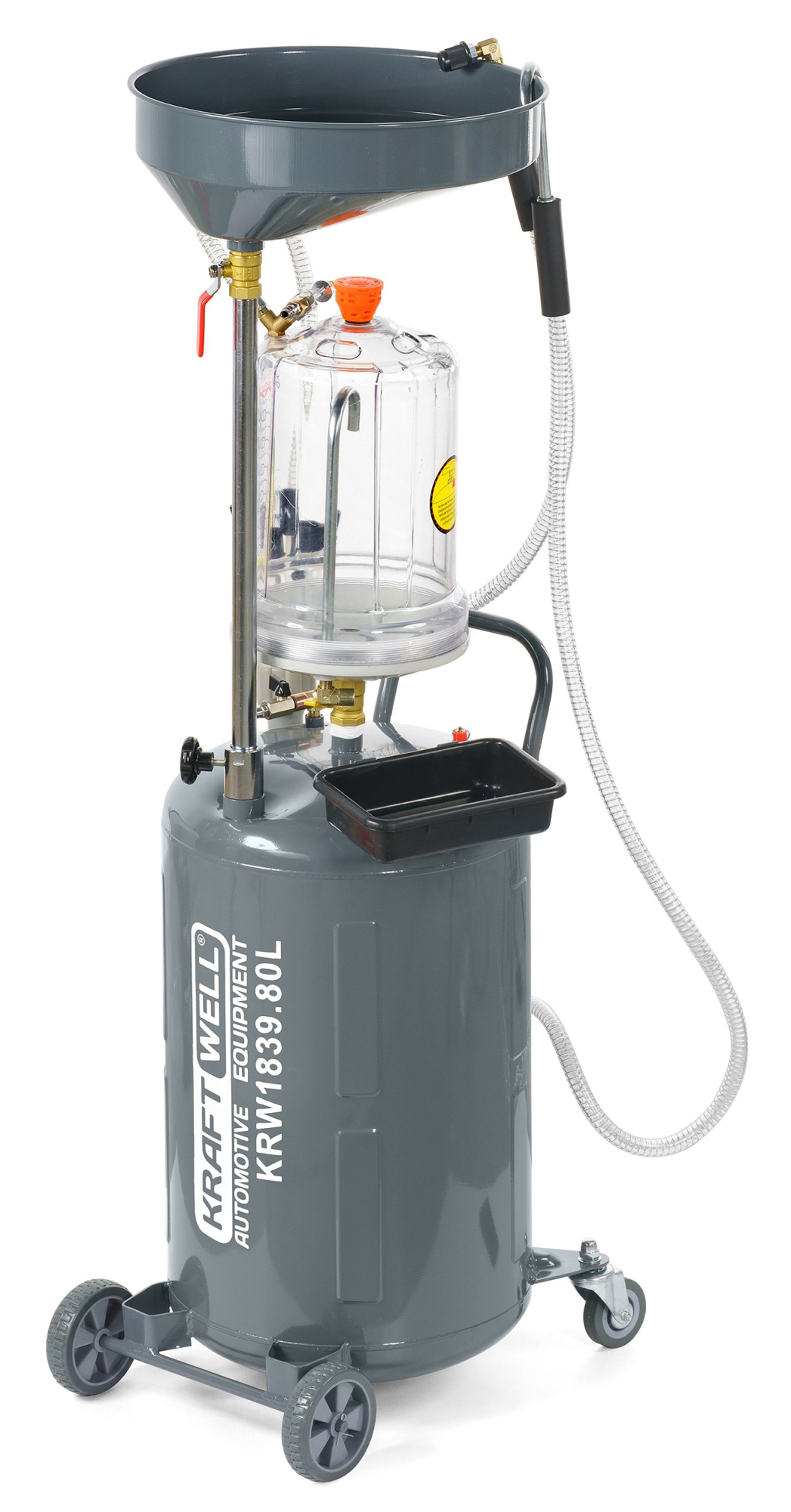 —KraftWell KRW1839.80L Установка для слива и откачки масла/антифриза с подъемной ванной и мерной емкостью, 100 л