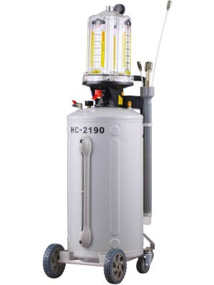 Мобильная вакуумная установка ATIS HC 2190 для замены моторного масла с мерной колбой, уровнем заполненности бака и усиленными колесами.