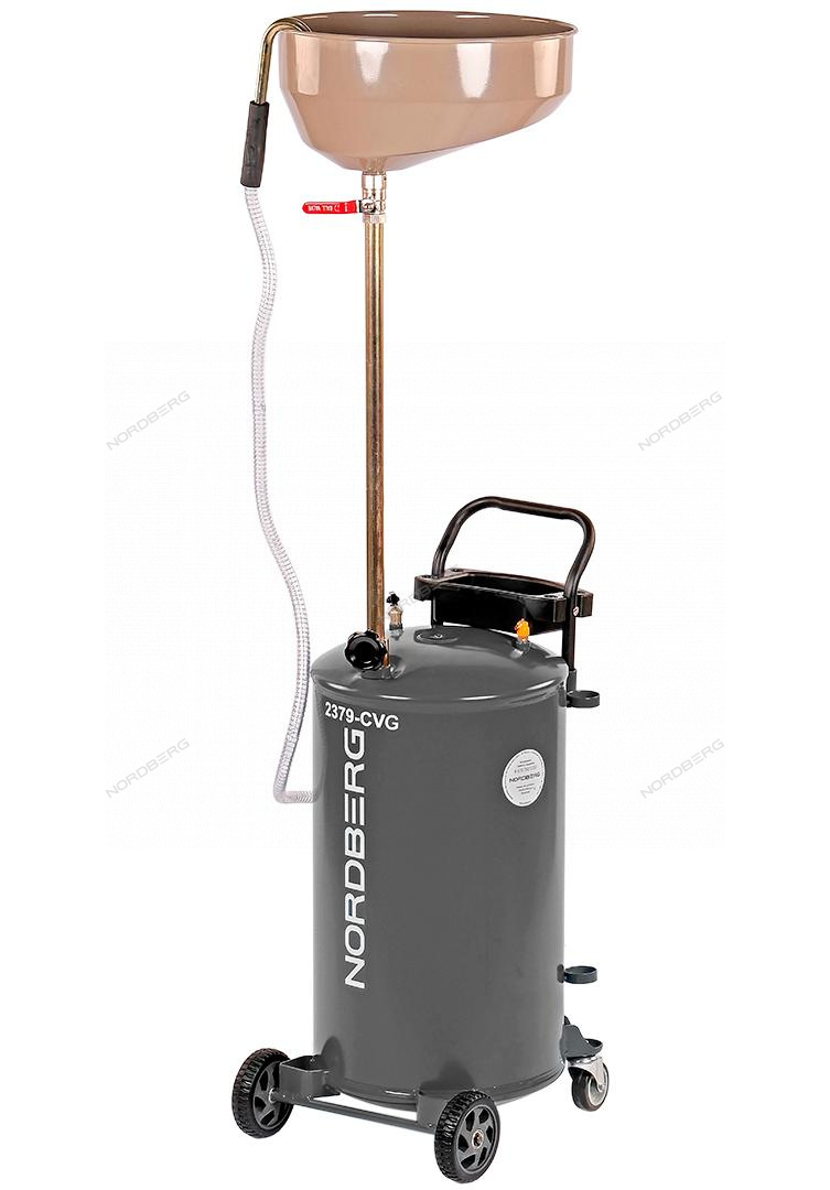 Установка для сбора масла пневматическая, 65 л, серая NORDBERG 2379-CVG предназначена для удаления отработанного масла и других жидкостей из любого транспортного средства свободным сливом.