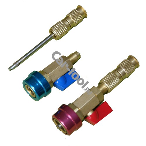 Набор приспособлений предназначен для замены золотников клапана Шредера в системе кондиционирования воздуха автомобиля. Данный комплект можно использовать для замены золотника порта низкого и высокого давления, не выпуская газ из системы.