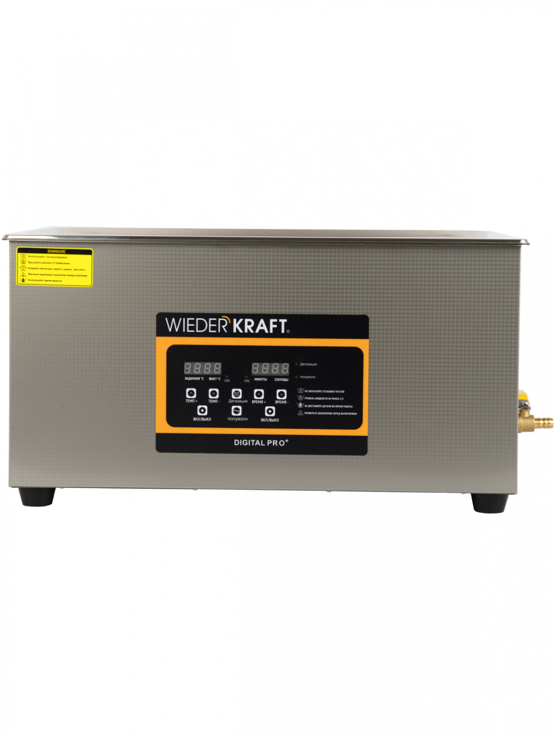Модель оснащена подогревом до 80°C, что значительно повышает эффективность при удалении жировых и масляных загрязнений. Функция дегазации и режим полуволны обеспечивают стабильность кавитации и позволяют очищать как массивные детали, так и деликатные изделия. А удобная цифровая панель управления даёт возможность точно настроить время (от 0 секунд до 30 минут) и температуру нагрева.