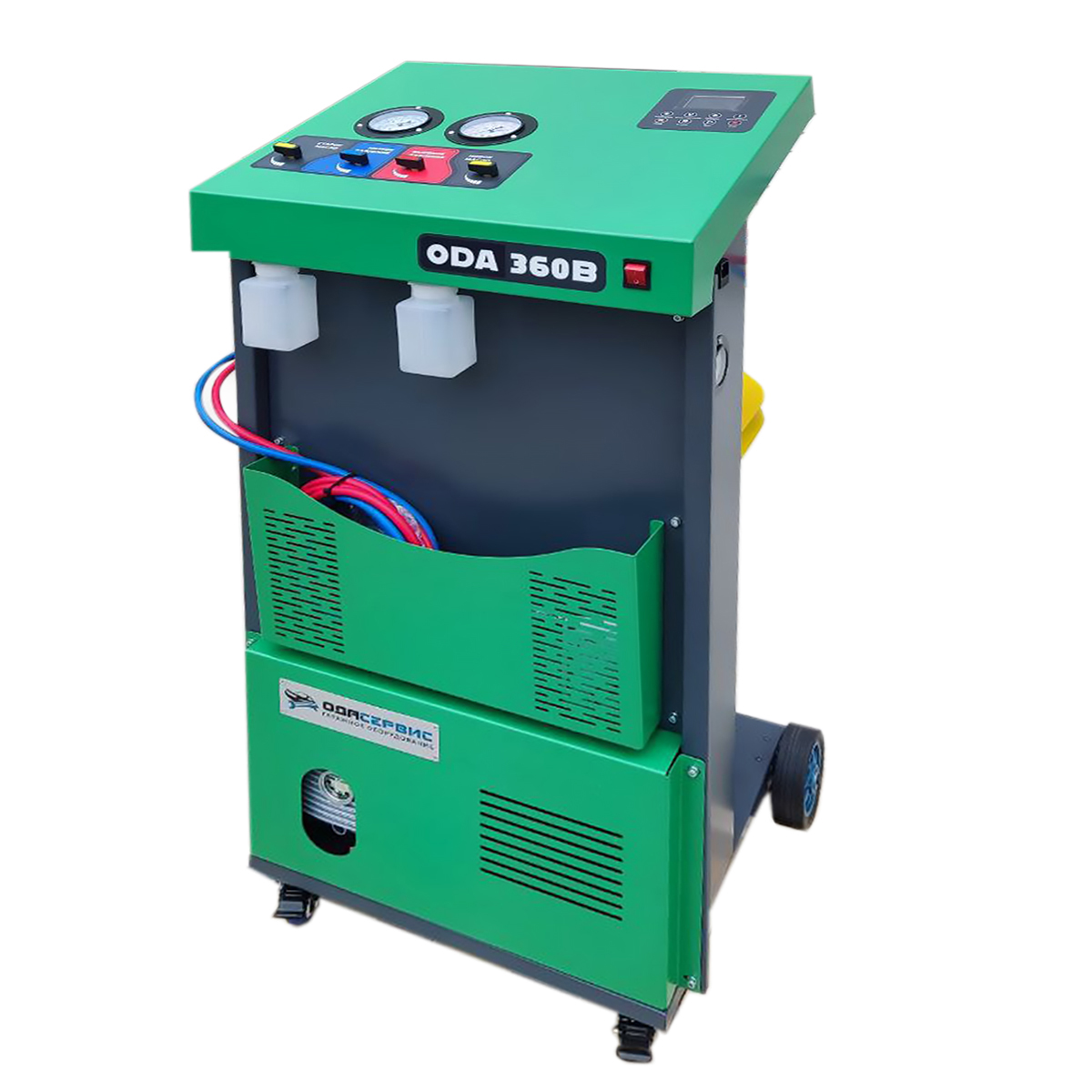 Извлечение: извлечение и регенерация хладагента из системы кондиционирования воздуха автотранспорта в бак станции. Автоматический контроль и отключение функции по окончании процесса