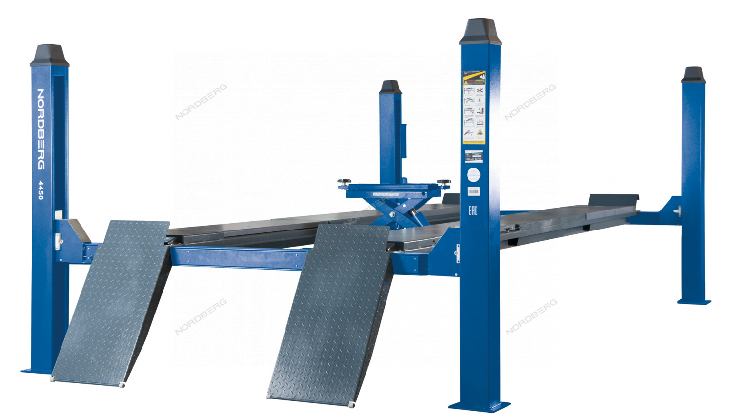 Надежный подъемник с увеличенной грузоподъемностью и удлиненной платформой, c ручной траверсой 3т N433, 380 В для сход-развала (Cиний) NORDBERG 4450_MB(M)