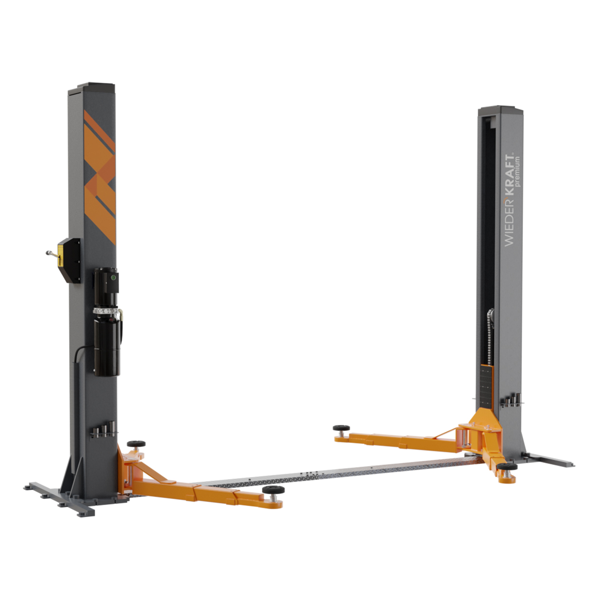 Управление стопорами с одной колонны экономит время при спуске автомобиля. Наличие концевого ограничителя подъема обеспечивает дополнительную безопасность во время эксплуатации подъемника.