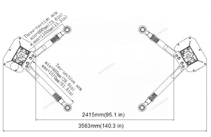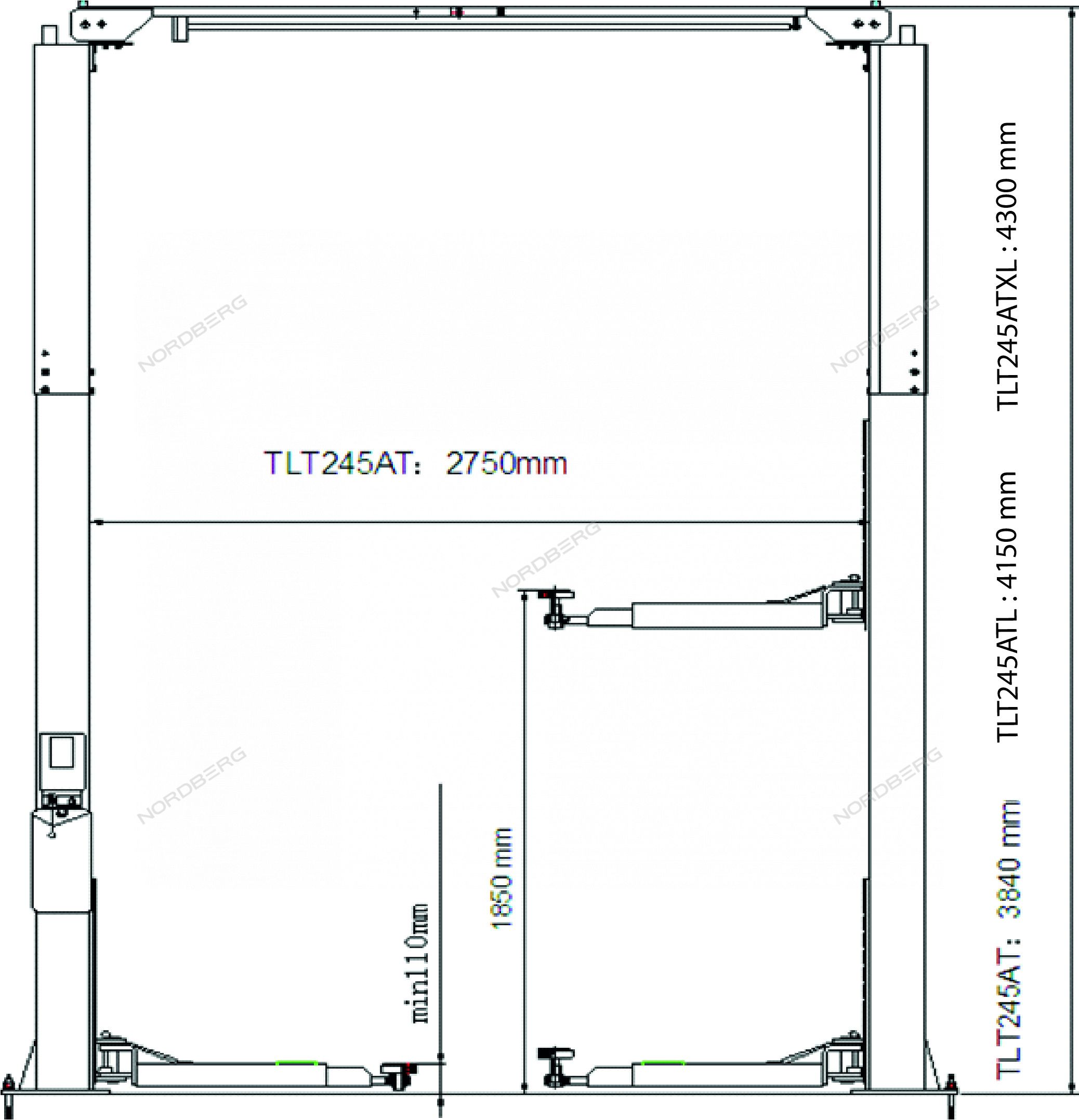 Подъемник Launch TLT-240SC имеет возможность уменьшение ширины на 150 мм. и уменьшение высоты на 300 мм.
