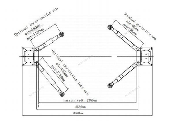 - Усиленные лапы - увеличенная толщина лап гарантирует устойчивую фиксацию автомобиля. Конфигурация лап подхвата: передняя пара - 3-секционная с диапазоном 580-1120 мм, задняя пара - 2-секционная с диапазоном 855-1365 мм.
