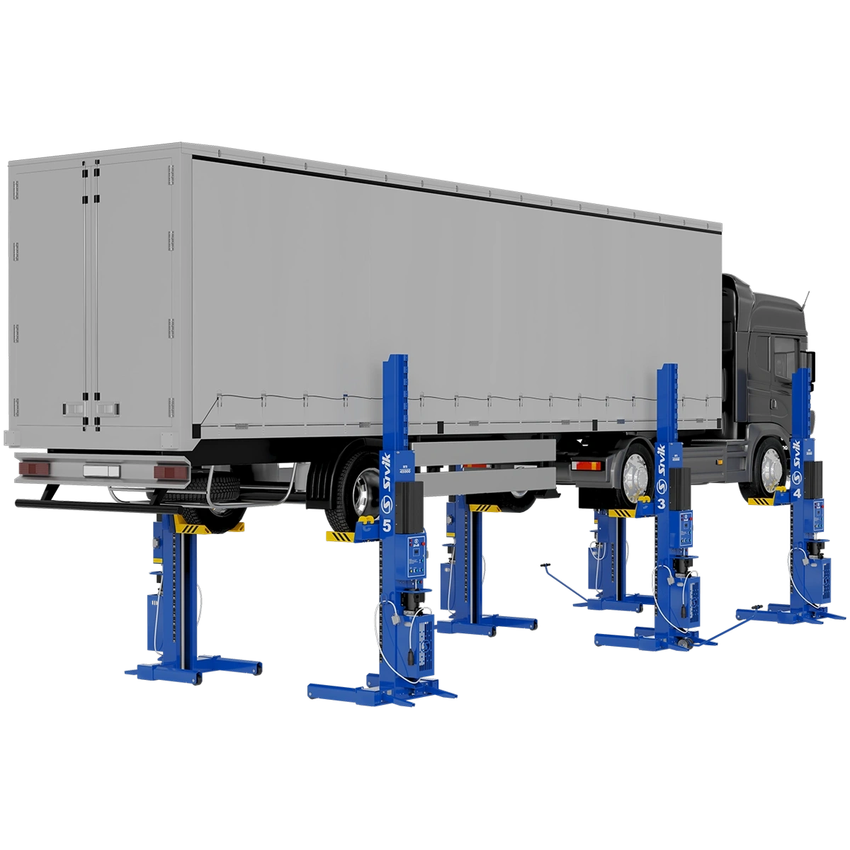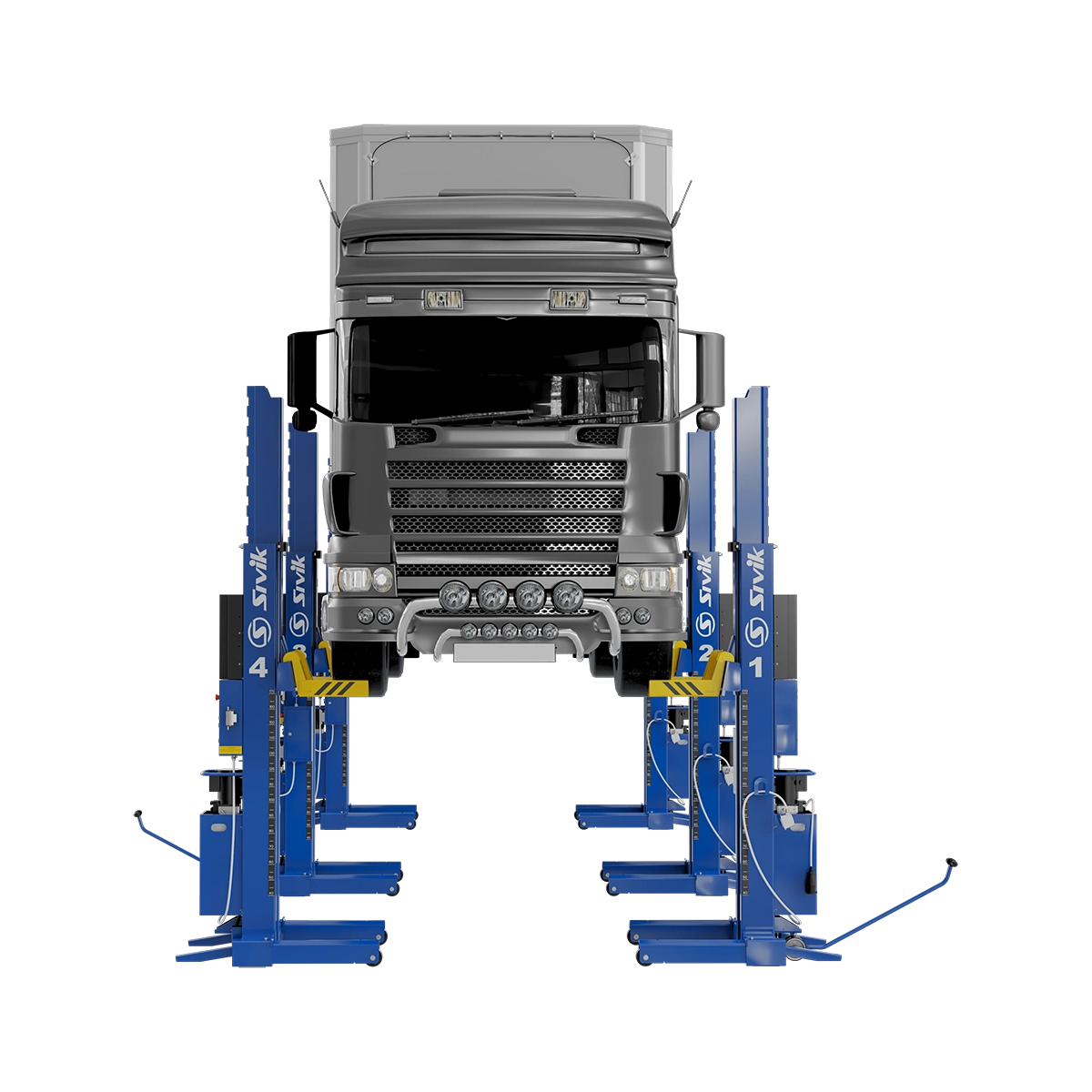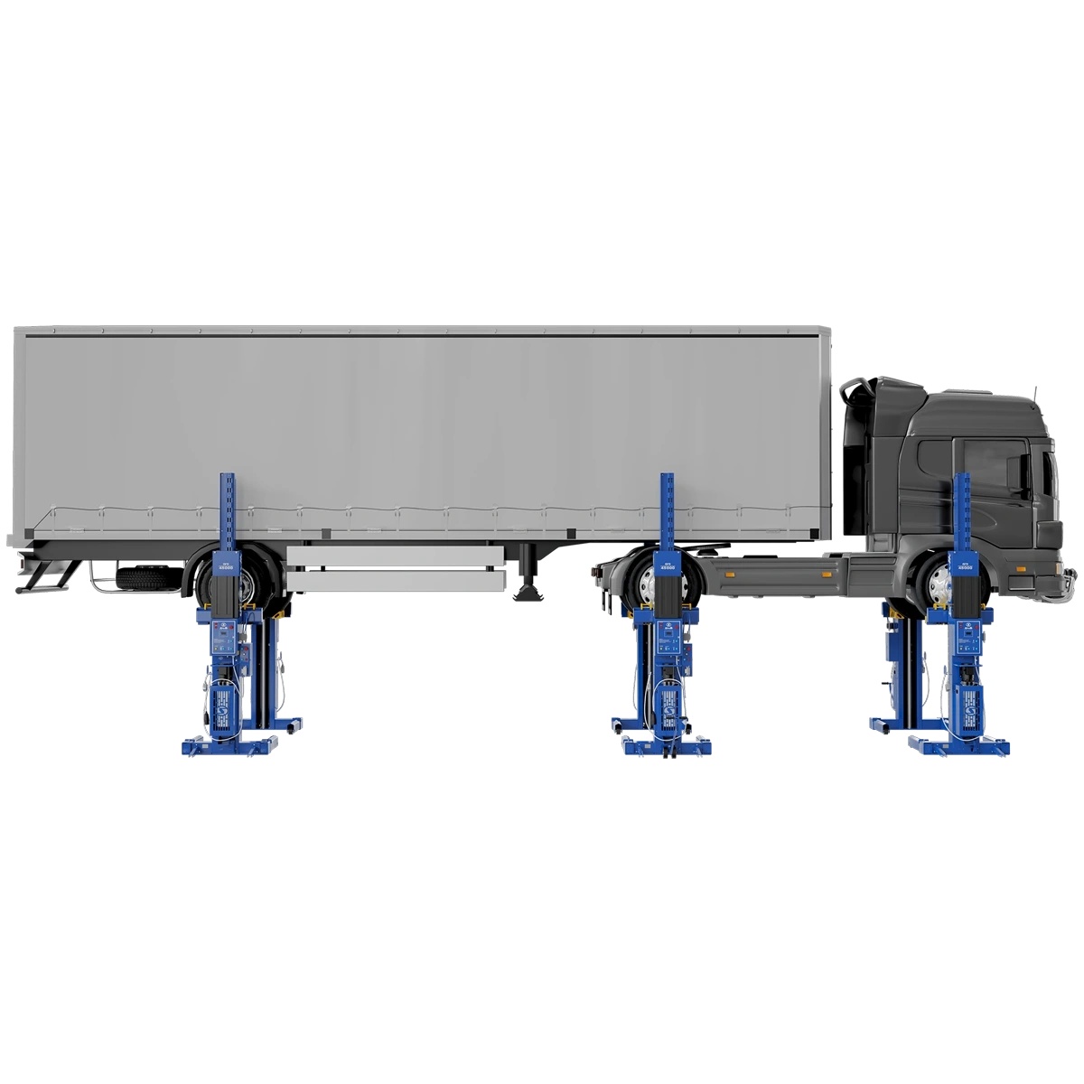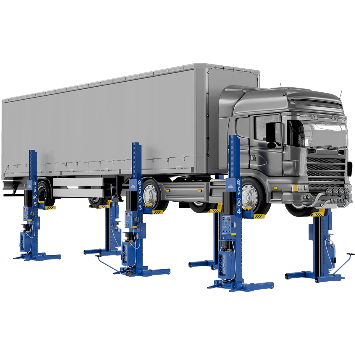 - Высокоточная система синхронизации движения кареток. Разница высоты не превышает 60 мм вне зависимости от нагрузки, приходящейся на каждую стойку.