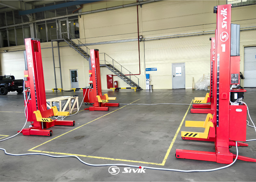 - Подъемник из 4 колонн с помощью комплекта дополнительных стоек можно нарастить до 6 колонн