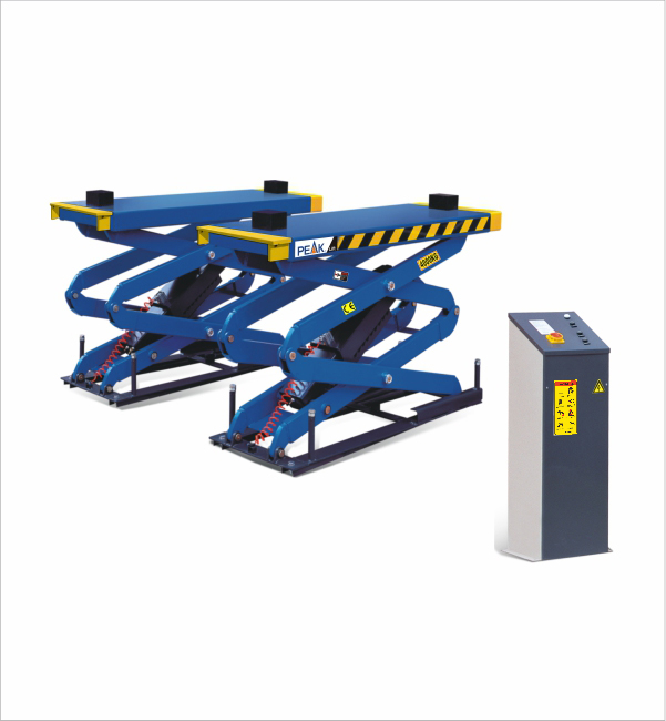 - Два синхронизированных цилиндра обеспечивают плавный подъем обеих платформ.