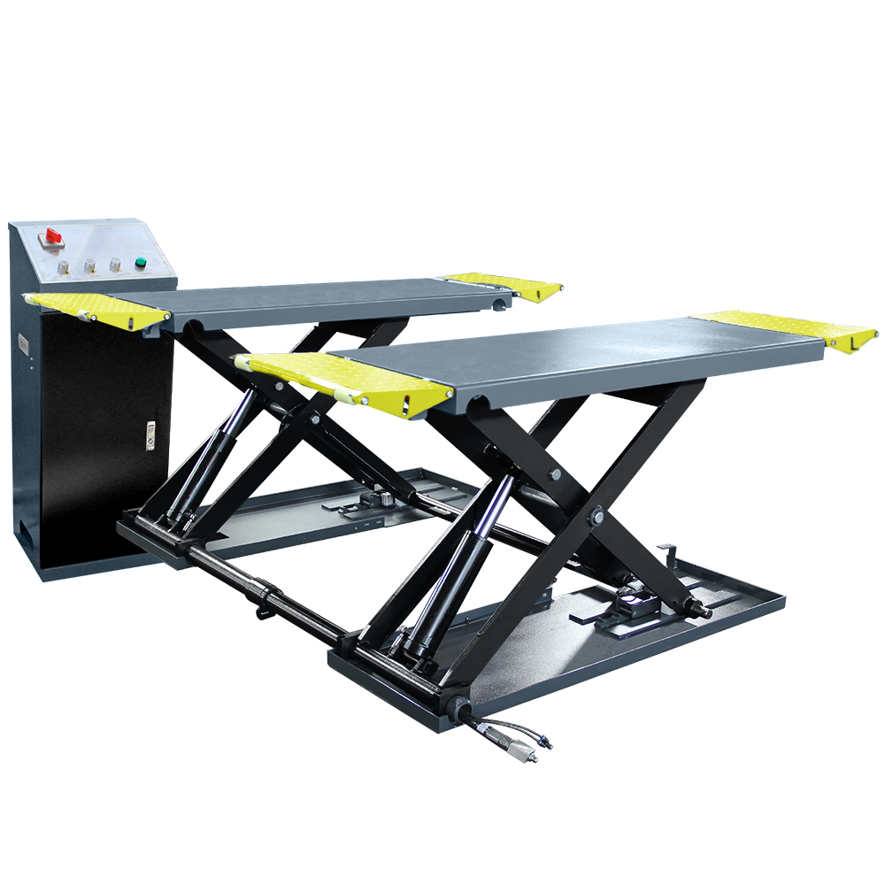 Подъемник ножничный, электрогидравлический, г/п 3500 кг., 220 В, 2,2 кВт, высота подъема 1000 мм., размеры платформ 1400-1940х530 мм., клиренс 110 мм.