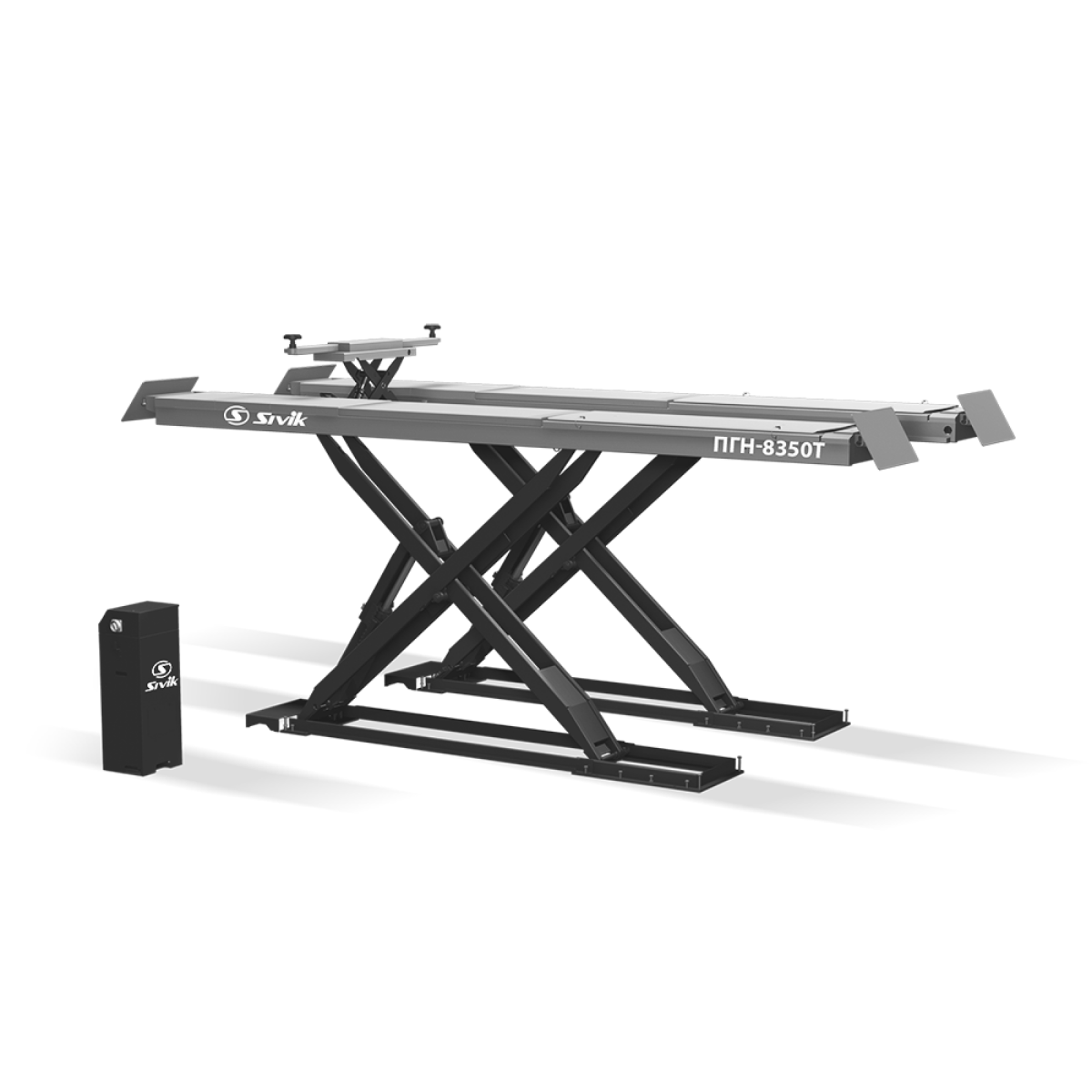 - Два гидроцилиндра обеспечивают плавный и синхронный подъем платформ