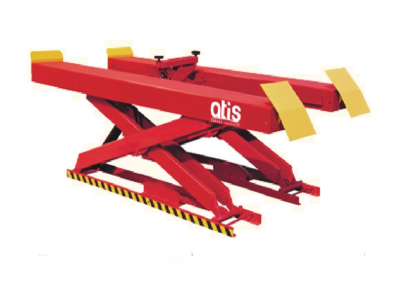 Ножничный подъемник Atis X550 высокой прочности, с двумя синхронизированными цилиндрами, регулируемыми пластинами и автоматическим устройством безопасности.