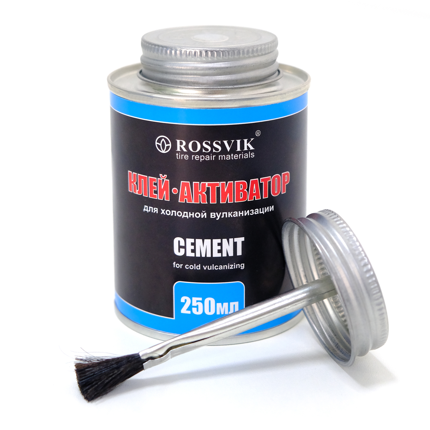 Объём 250мл (банка с кистью)<br />Универсальный клей-активатор ROSSVIK применяется для ремонта камер и шин латками, грибками, жгутами и кордовыми пластырями методом “холодной” вулканизации. Состав негорючий, термостойкий, быстросохнущий. Содержит активаторы “холодной” вулканизации резины.