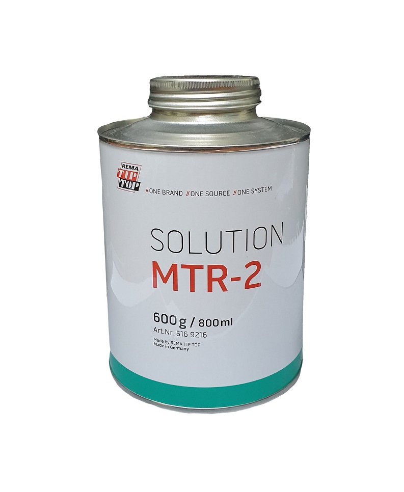 Раствор-катализатор для нанесения на отшерохованную внутреннюю поверхность шины, а также на поверхность кратера повреждения и клеящий слой пластырей REMA TIP TOP и перед дублированием прослоечной резиной MTR RUBBER. Рабочая температура 100°- 160°.