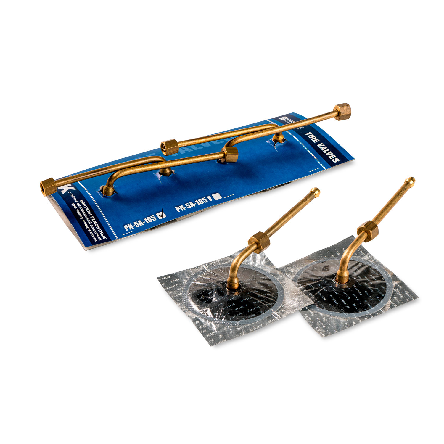 Удлиненный вентиль с гайкой РК-5А-165 применяется для ремонта пневматических камер для шин 425/85R21/1220*400R533/1300*530-533 устанавливаемых на автомобили КАМАЗ/УРАЛ/КрАЗ с централизованной системой подкачки колес.  Размер  100х165 угол 94° .