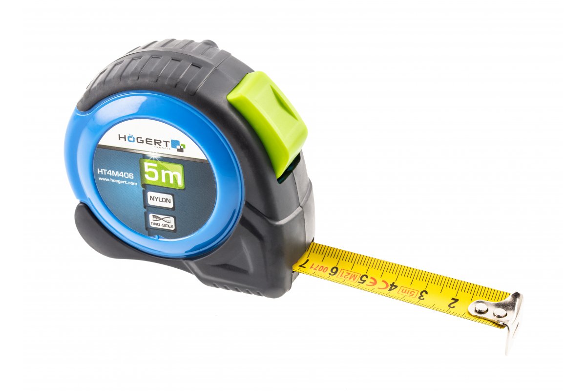 Рулетка 5 м х 19 мм, покрыта нейлоном, стопор ленты, двухсторонняя, MID