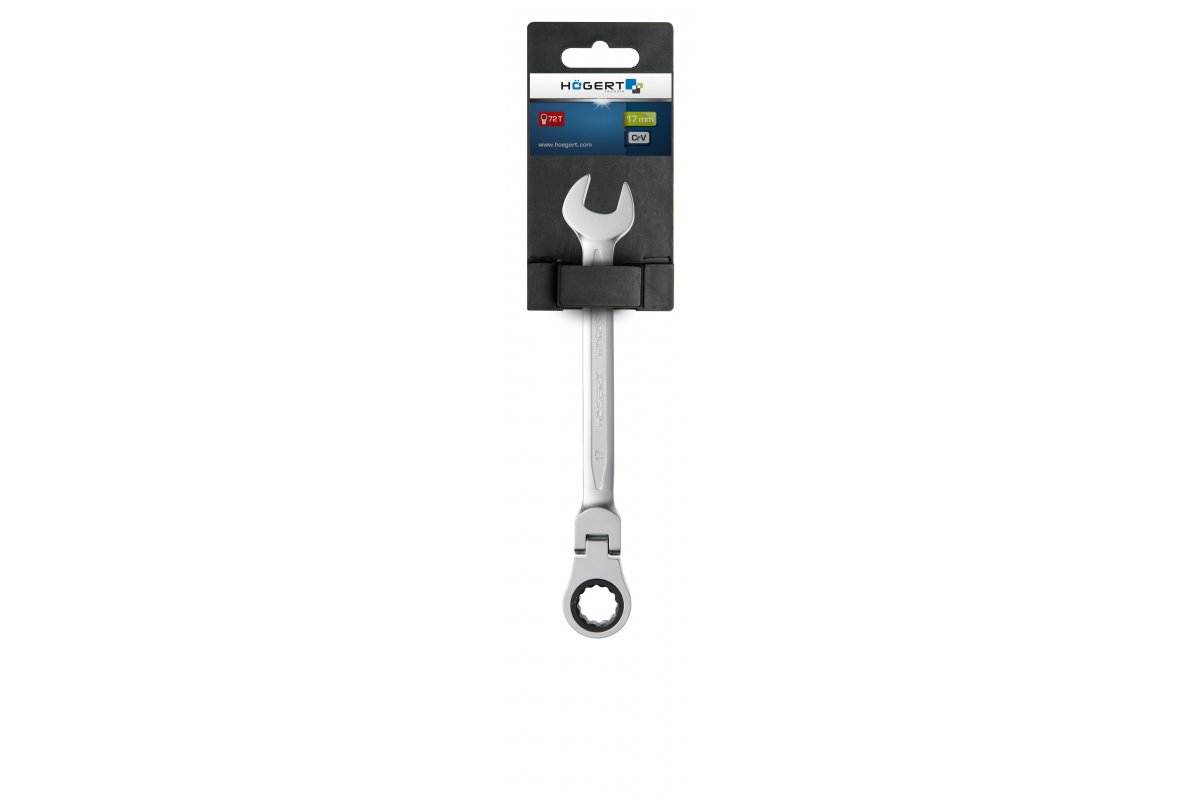 —Ключ комбинированный шарнирный с трещоткой 17 мм, 72T, сталь CrV