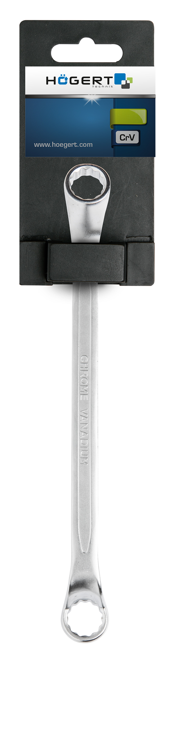Ключ накидной коленчатый 20 x 22 мм изготовлен из стали марки CrV и соответствует стандарту DIN 838. Модель выпускается под брендом HOEGERT. Изделие предназначено для затяжки и отвинчивания гаек и болтов с шестигранными головками. На странице товара доступны несколько фотографий, демонстрирующих внешний вид и детали изделия.