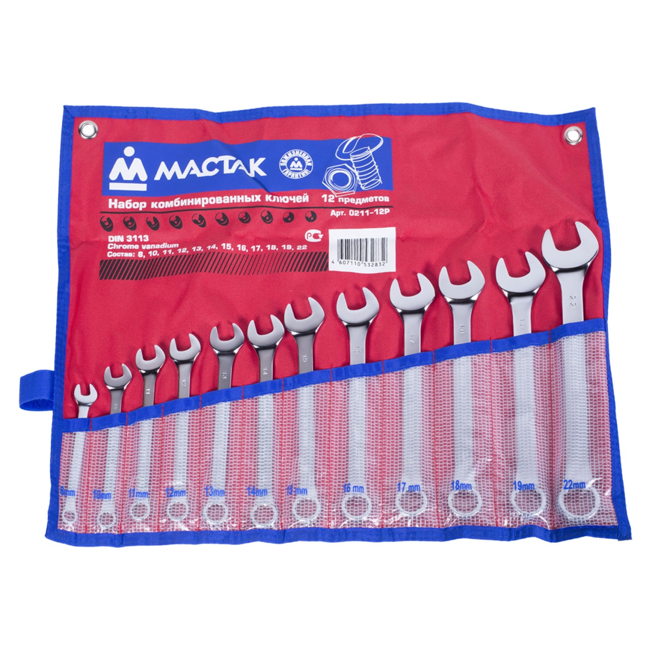 Комплектация данного набора включает ключи наиболее востребованных размерностей от 8 мм до 22 мм без пропусков редко встречающихся размеров. Удобное размещение ключей в чехле - каждый ключ в своей ячейке под соответствующим размерности номером. Разместив набор на рабочем месте – на стене, инструментальном стенде или верстаке, вы всегда будете иметь возможность выбрать тот ключ, который необходим в данный момент.