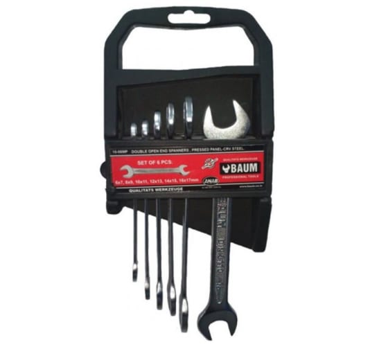 Набор рожковых ключей BAUM в пластиковом держателе, 8x10-20x22 мм, 6 предметов 10-06МР предназначен для проведения работ с крепежными изделиями, имеющими стандартный внешний 2-4-6-8-гранный профиль.