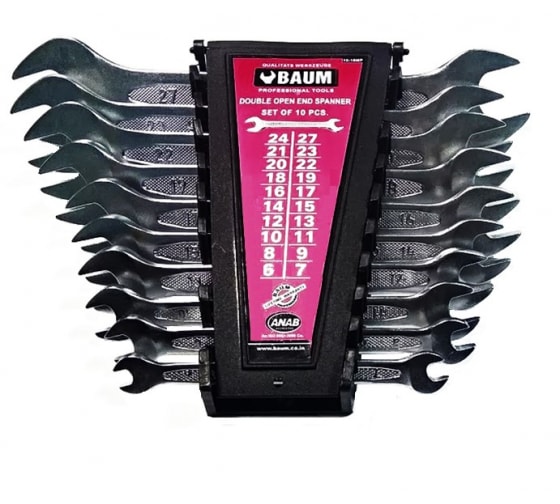 Набор рожковых ключей BAUM в пластиковом держателе, 6x7-24x27 мм, 10 предметов 10-10МР предназначен для проведения работ с крепежными изделиями, имеющими стандартный внешний 2-4-6-8-гранный профиль.