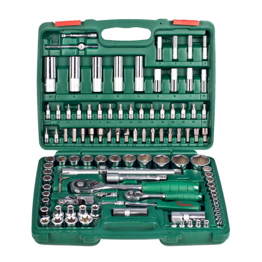 В составе набора инструментов TK-108 — 108 предметов с посадочными квадратами ?" и ?". Все они выполнены из первоклассной хромванадиевой стали. Этот материал отличается высокими прочностью и износостойкостью.