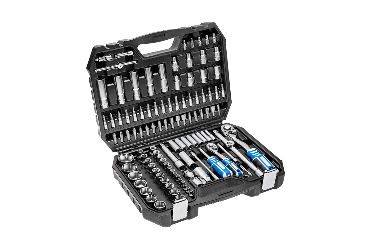 Набор инструментов HOEGERT содержит 112 изделий и включает динамометрические ключи с гнездами 1/4″ и 1/2″. Комплектация рассчитана на выполнение широкого спектра задач по ремонту и сборке. Все инструменты упакованы в удобный кейс для хранения и транспортировки.