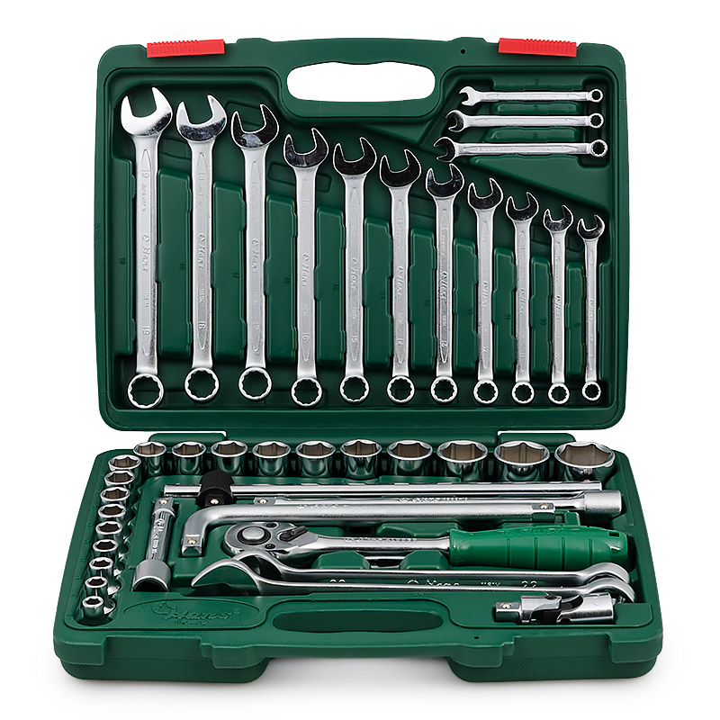 В комплектацию предназначенного для проведения авторемонтных работ набора инструментов общего назначения TK-42 от HANS входят 42 предмета. Среди них – 16 комбинированных ключей и 19 торцевых головок наиболее ходовых размеров, что делает этот набор особенно полезным при работе с агрегатами и ходовой частью автомобиля.