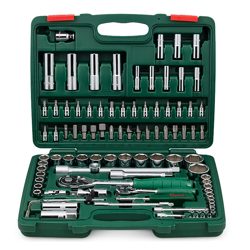 В составе набора инструментов Hans TK-94 — 94 предмета с посадочным квадратом ?" и ?". Материалом, из которого они изготовлены, является крайне прочная хромванадиевая сталь,