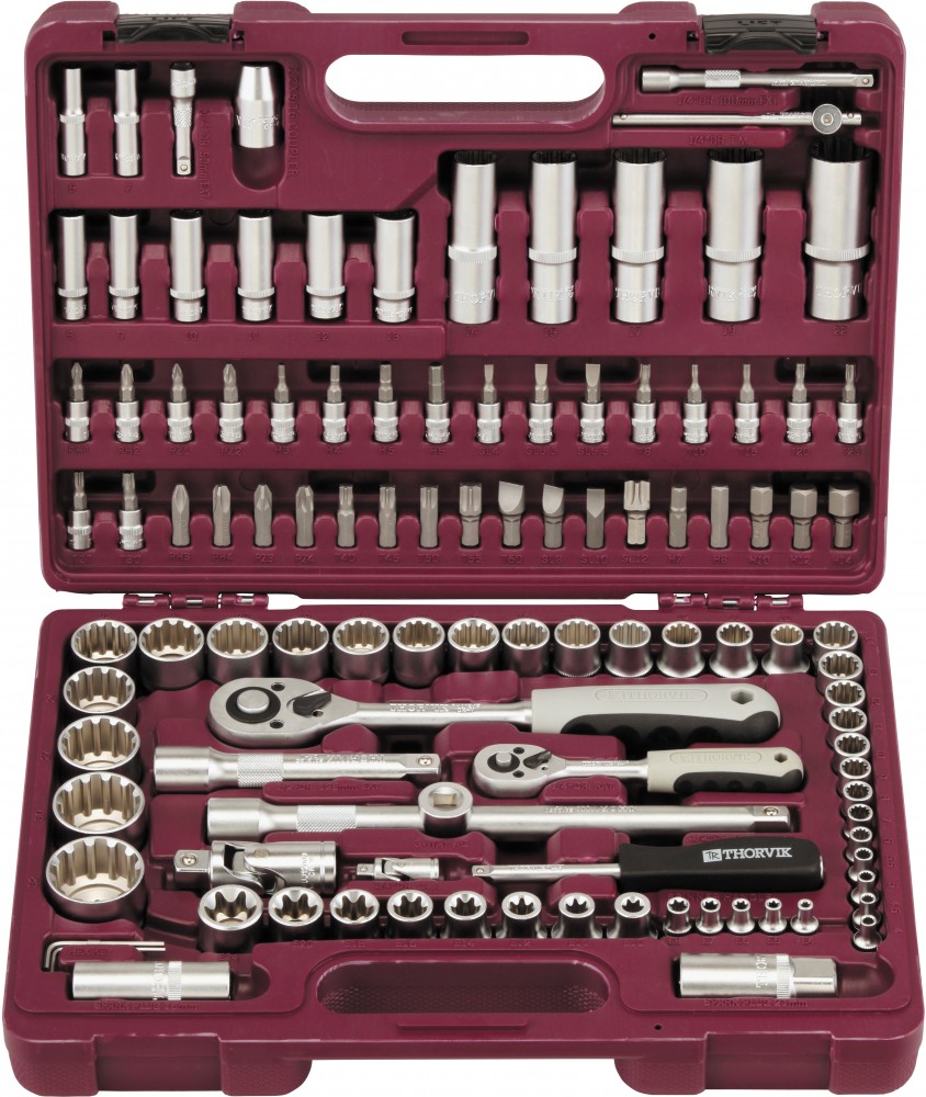 Инструментальные наборы Thorvik - это высокое качество изделий, входящих в состав наборов, удобные прочные кейсы для хранения, оптимальная комплектация позволяющая удовлетворить потребность мастера при обслуживании техники и обеспечить всем необходимым рабочее место при производстве комплексных слесарно-монтажных или механосборочных работ. Наборы Thorvik имеют ударопрочный морозоустойчивый кейс с надеждными защелками. Самые полные и удобные по наполнению комплектации для всех типов задач.