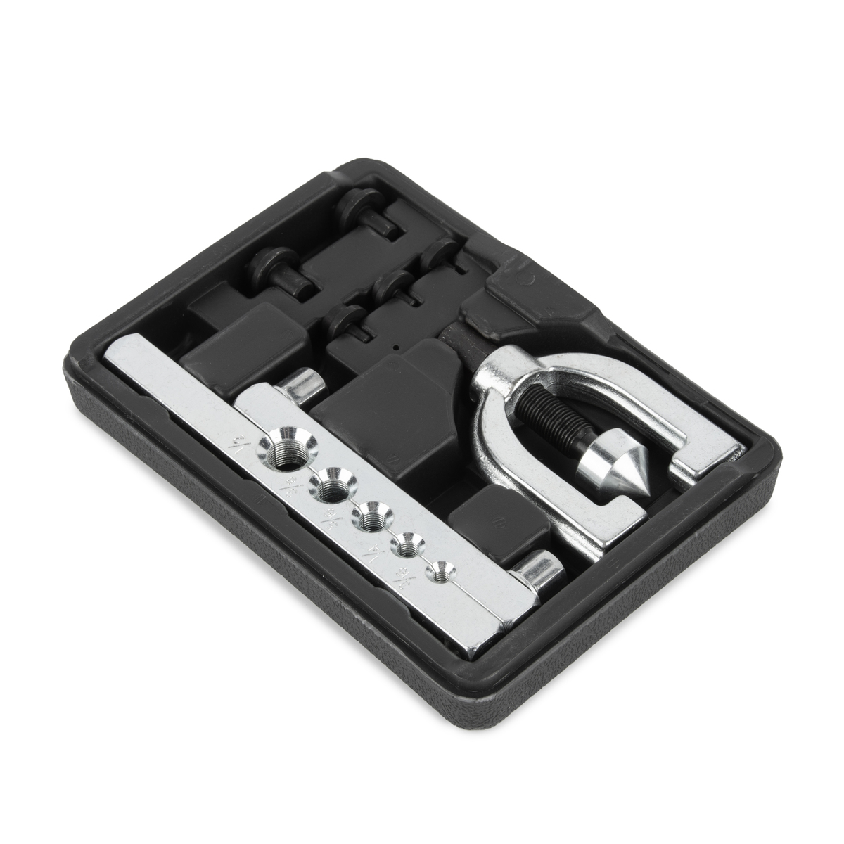 • Полная комплектация: Все необходимое для вальцевания и развальцовки в одном наборе: тиски, матрица и 5 пуансонов.