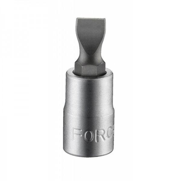Бита-насадка шлицевого типа от бренда Force предназначена для работы с крепежом, оснащённым шлицевым пазом. Изделие имеет посадочный квадрат 1/4", что обеспечивает совместимость со стандартными дрель-патронами и другими инструментами с аналогичным разъёмом.