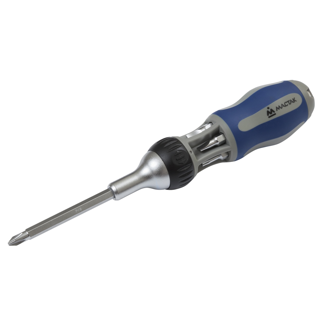 1 шт - отвёртка с трещоточным механизмом 6 шт - вставки (биты): крестовые Phillips PH1, PH2 шлицевые Slotted 5 мм, 6 мм TORX T15, T20