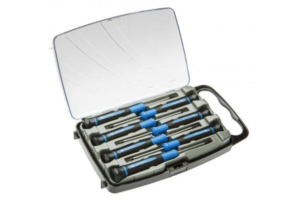 Набор отверток для точных работ, 7 шт., бренда HOEGERT, предназначен для выполнения деликатных задач, требующих высокой точности. В комплект входят семь часовых отверток, подобранных по размерам и типу для работы с мелкими крепежными элементами.