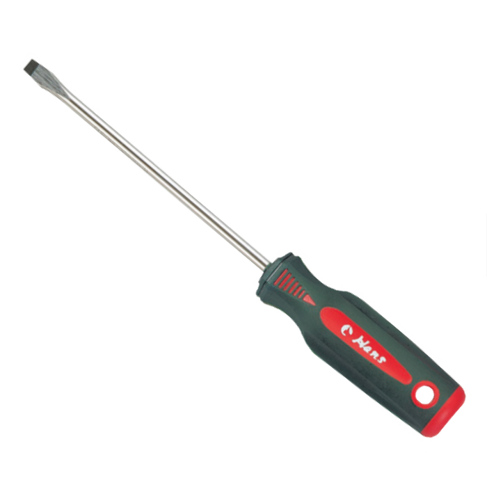 Отвертка шлицевая 0410M5-5 производства бренда HANS. Модель представлена в исполнении с размером наконечника 5,5 мм и длиной 125 мм. Инструмент предназначен для работы с шлицевыми винтами и болтами соответствующего размера.