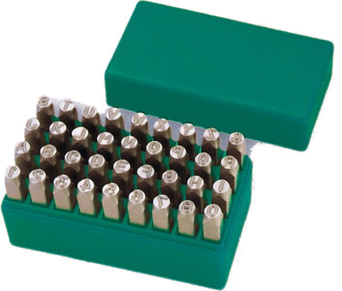 Набор клейм букв и цифр модели 561501-364 от бренда HANS включает 36 предметов. Предназначен для нанесения маркировки на различные поверхности с помощью ударного инструмента.
