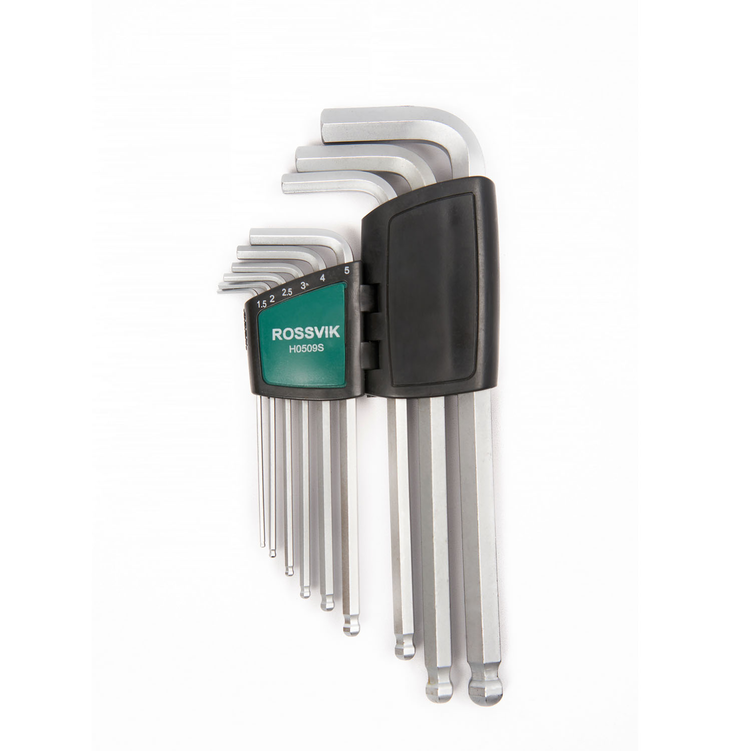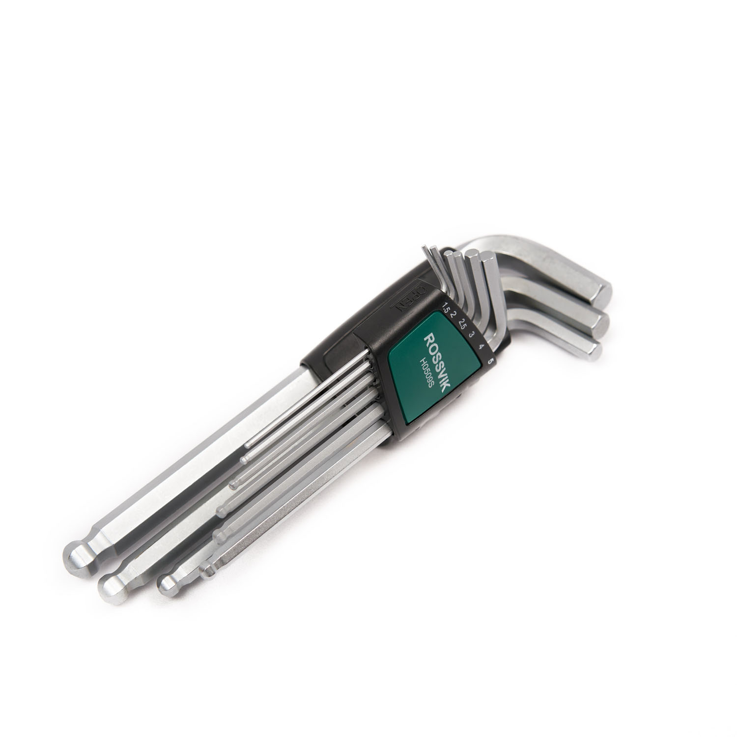Набор шестигранных ключей Rossvik модели H0509S включает 9 длинных ключей с шаровидным наконечником. Комплектация охватывает размеры: 1,5; 2,0; 2,5; 3,0; 4,0; 5,0; 6,0; 8,0 и 10,0 мм. Ключи предназначены для работы с шестигранными винтами и болтами, в том числе в труднодоступных местах благодаря удлинённой форме и шаровому концу.