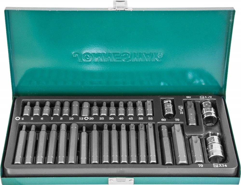 - 10 - HEX, L=30 .. 7 .: H4, H5, H6, H7, H8, H10, H12 - HEX, L=75 ., 7 .: H4, H5, H6, H7, H8, H10, H12 TORX, L=30 , 7 .: 20, 25, 30, 40, 45, 50, 55 TORX, L=75 , 7 .: 20, 25, 30, 40, 45, 50, 55 - 14 TORX, L=30 ., 2 .: 60, 70 TORX, L=75 ., 2 .: 60, 70 - 3/8DR10 - 1/2DR10 - 1/2DR14