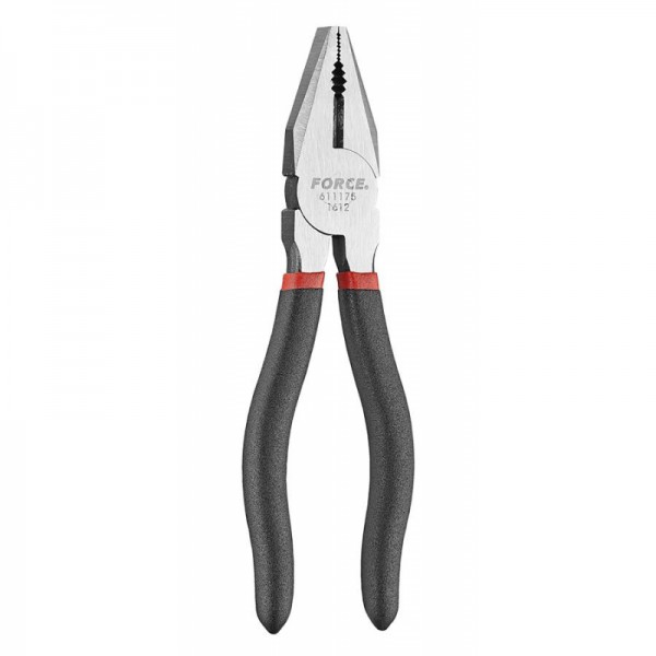 Пассатижи Force модели 611215 представляют собой инструмент с длиной 215 мм. Губки имеют стандартную форму, что обеспечивает универсальность применения для зажима, сжатия и удержания деталей различной конфигурации.