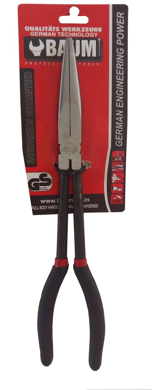 Плоскогубцы модели 126-11FN от бренда BAUM предназначены для точного захвата и удержания деталей благодаря плоским длинным носикам. Инструмент оснащён удлинёнными рукоятками длиной 11 дюймов (275 мм), что обеспечивает удобство при работе и повышенный рычаг силы. Конструкция подходит для задач, требующих точного позиционирования и надёжного сцепления с заготовкой.