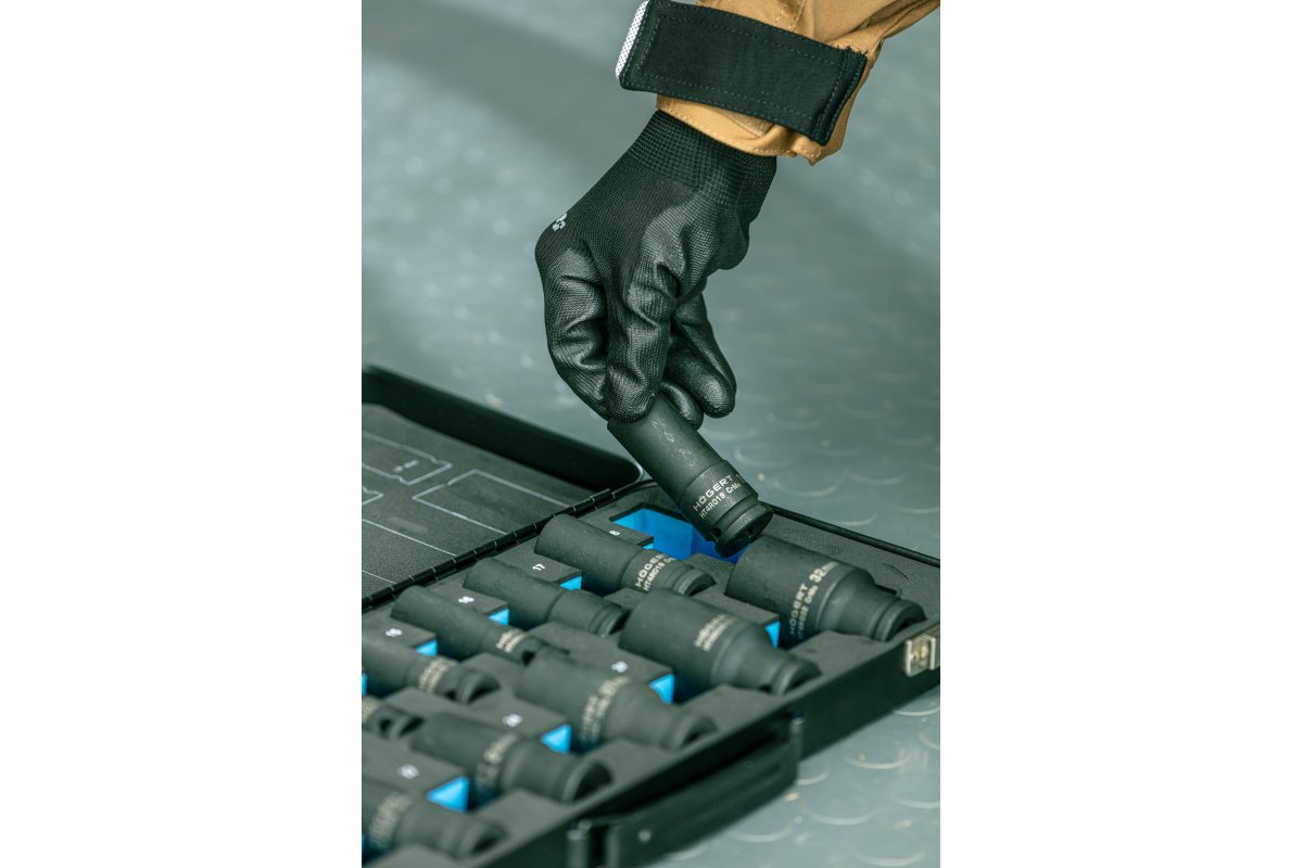 Набор ударных глубоких шестигранных головок предназначен для работ с резьбовыми соединениями при проведении ремонтных и сервисных работ. Головки рассчитаны на профессиональное применение с гайковертами.