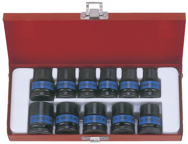 —KING TONY Набор ударных торцевых головок 1/2", шестигранные, 10-21 мм, 11 предметов