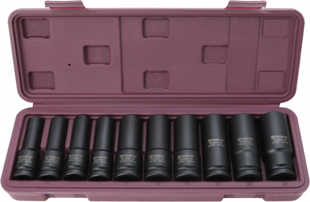 —Thorvik S23S2110S Набор головок торцевых ударных глубоких 1/2"DR, 10-24 мм, 10 предметов