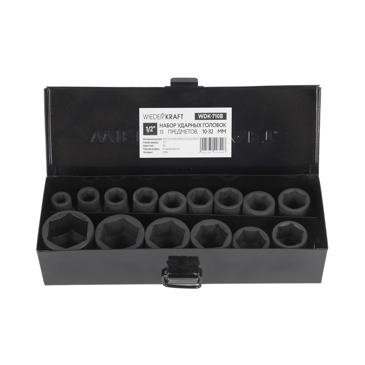 15 торцевых головок под гайку 10, 12, 13, 14, 15, 16, 17, 18, 19, 21, 22, 24, 27, 30, 32 мм.