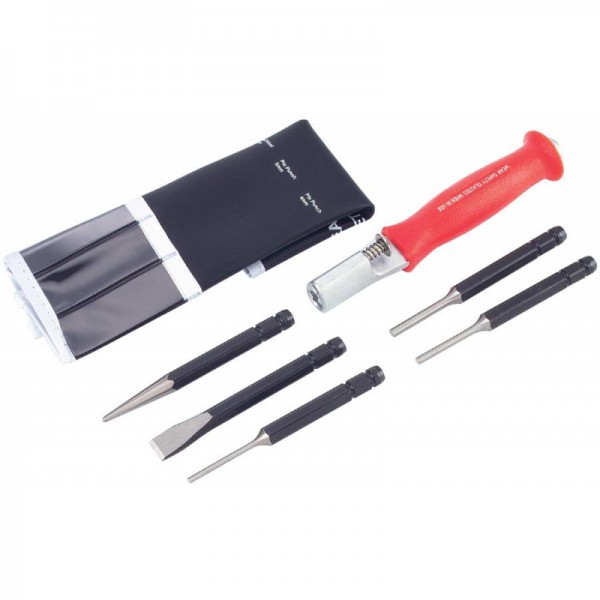 Набор 906U1 от бренда Force включает ударную рукоятку со сменными насадками: зубило, керн и три пробойника (6 пр.).